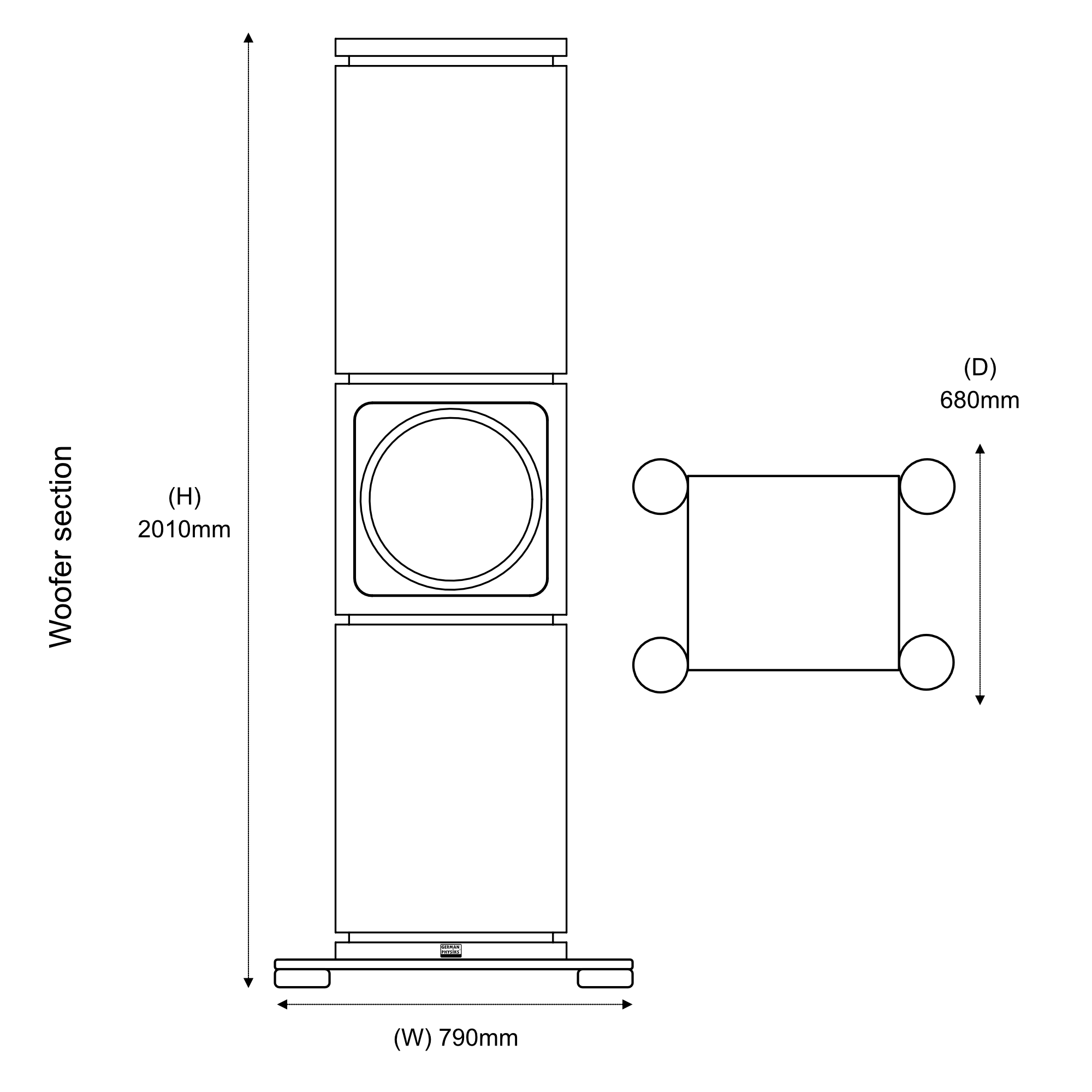 Woofer section – 79 cm W x 201 cm H x 68 cm D