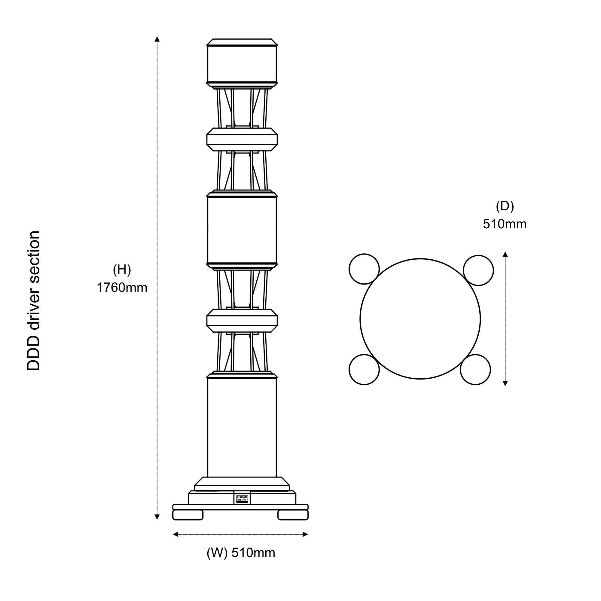 DDD driver section – 51 cm W x 176 cm H x 51 cm D