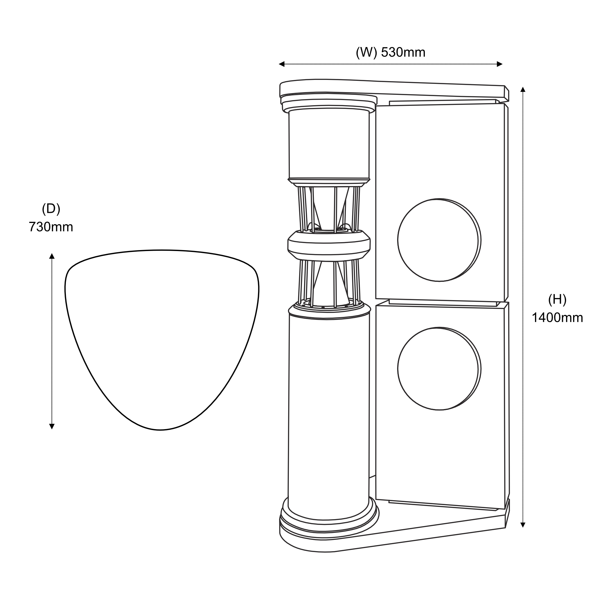 Dimensions – 530mm W x 1,400mm H x 730mm D (20.9" W x 55.1" H x 28.7" D)